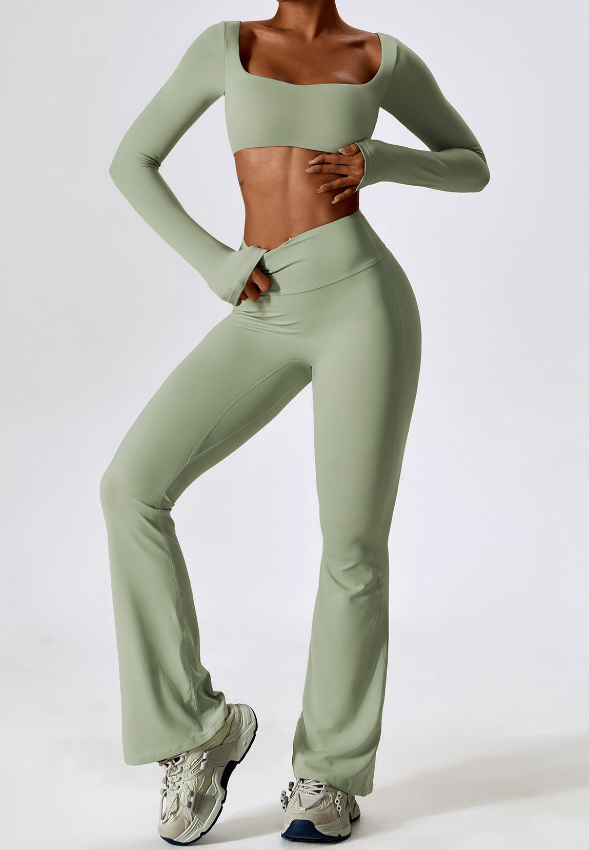 SkinTouch Square Neck Long Sleevies Boots Cut Sports Set